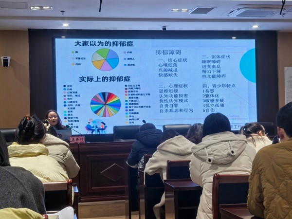 培训中,高婷叶主任结合丰富的临床经验与真实案例,从青少年心理健康现状切入,用详实的数据揭示了当前13-18岁青少年中20%存在心理健康问题的严峻现实,其中情绪障碍、焦虑障碍、行为品行障碍等问题尤为突出。她指出,近年来青少年心理问题呈现“愈演愈烈、年龄趋小”的趋势,厌学休学、网络沉迷、自伤自杀等现象时有发生,亟需学校与家庭的高度重视。