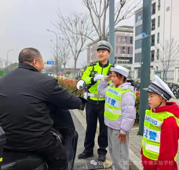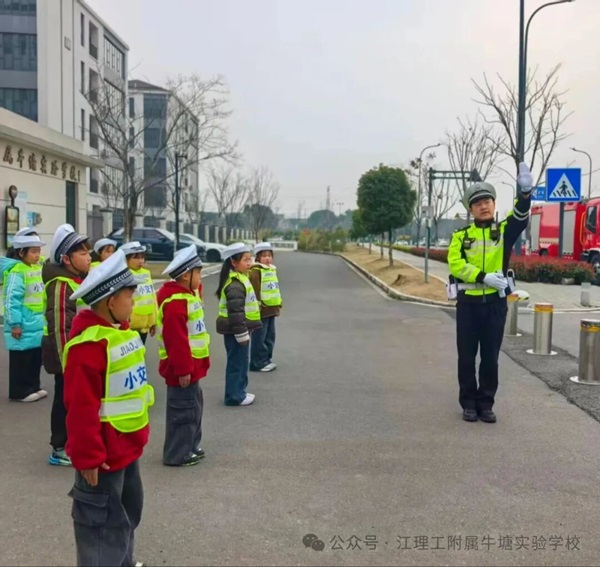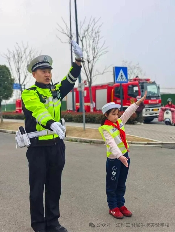 为进一步深化警校共建育人机制的内涵,落实校园交通安全教育工作的相关要求,提升我校少年儿童的交通安全意识,锤炼小交警社团成员的责任担当与文明素养,学校于2026年3月19日特邀牛塘交警中队的警察叔叔走进校园,组织开展“现场交通指挥示范”主题实践活动。该活动使社团成员通过沉浸式体验,学习交通知识,掌握指挥技能,切实筑牢校园交通安全防线。